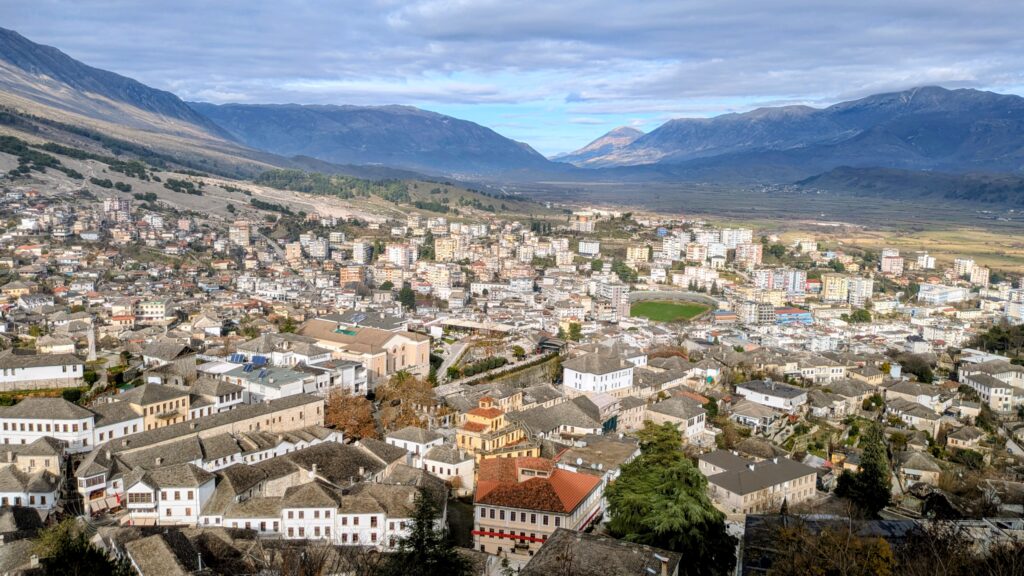 From there we went to Gjirokastër, an Ottoman hill town dominated by a castle later used as a communist prison. Inside the fortress: tanks, artillery, and reminders of more recent violence. Outside: charming stone streets, heavily tourist-oriented, but undeniably atmospheric.