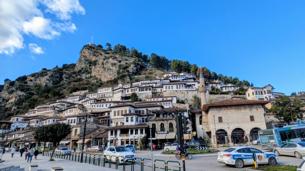 On the final day we detoured to Berat, Albania’s wine region. White stone houses stacked along a river valley, old bridges, and interestingly, the first real traffic we’d seen. Berat felt alive in a way Sarandë didn’t.